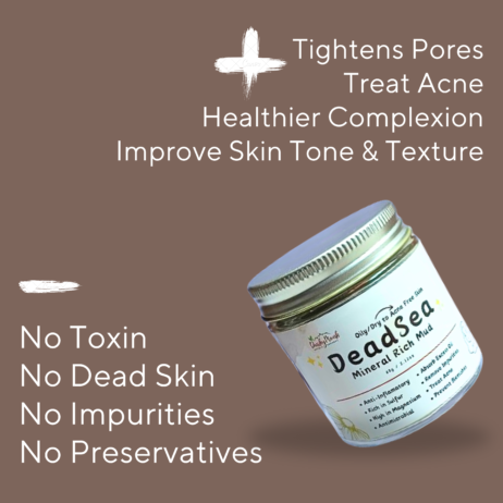 - Organic Mud Mask: DeadSea Mud is a natural mineral-rich element harvested from the Dead Sea.